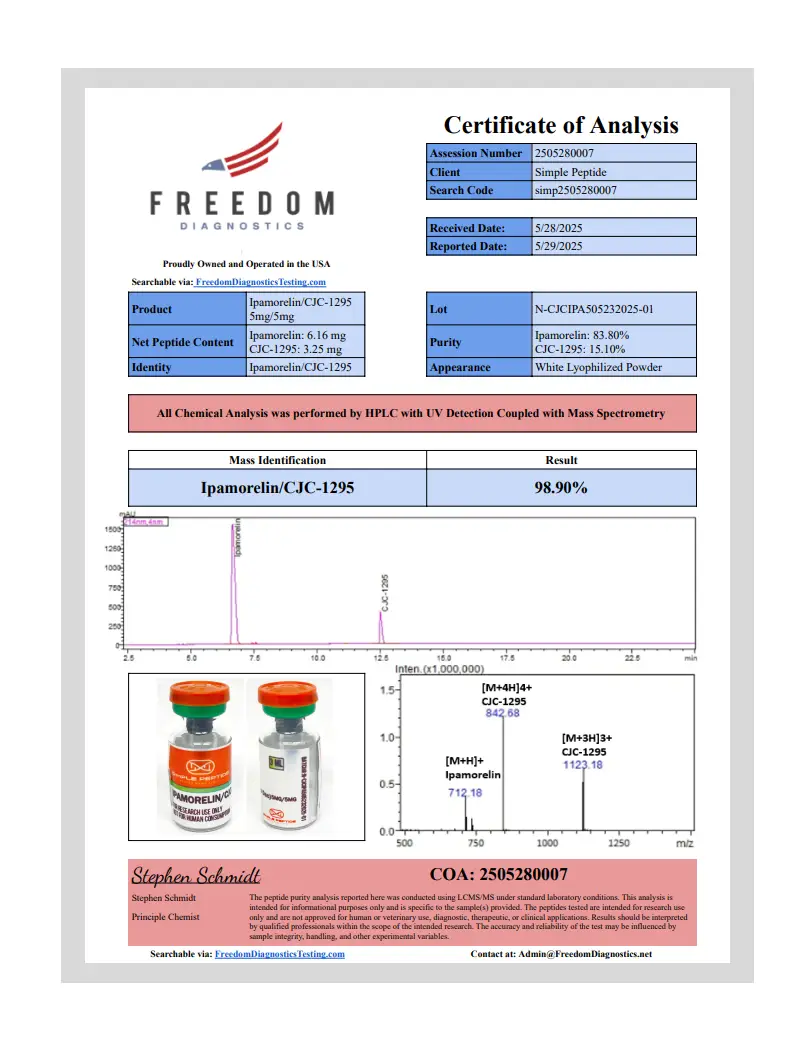 Ongoing scientific research continues to include Ipamorelin / CJC-1295 (without DAC) in peptide focused laboratory studies. Its defined composition, predictable handling characteristics, and suitability for controlled research models make it a useful tool for advanced experimental work.