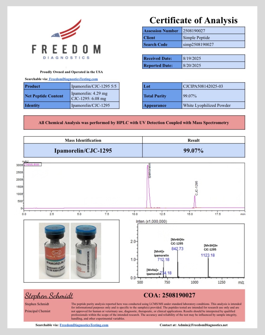 Supported by a Certificate of Analysis.