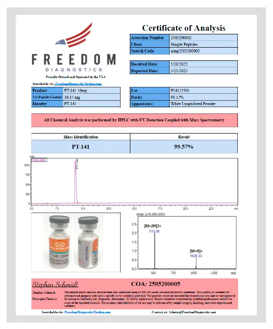 Ongoing scientific research continues to include PT-141 in peptide focused laboratory studies. Its defined sequence, stable behavior, and suitability for controlled research models make it a useful tool for advanced experimental work.